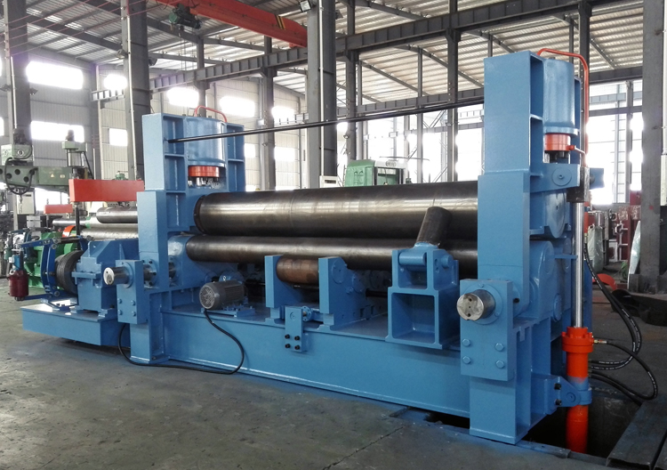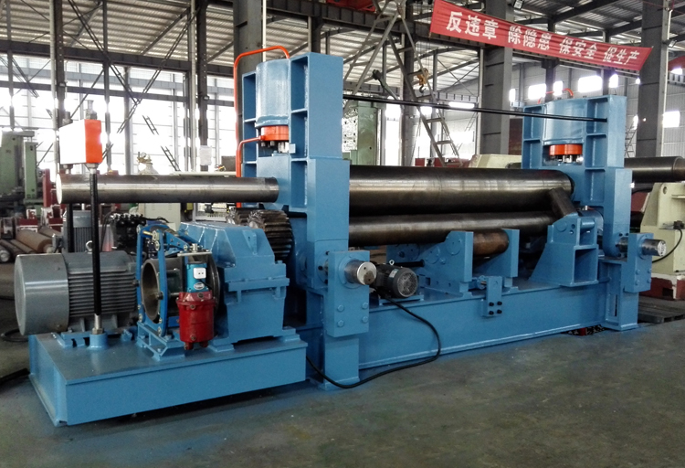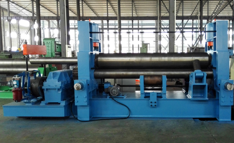 上輥成鼓形狀,下輥的下部有托輥配合調(diào)節(jié),從薄板到厚板這一廣泛的范圍內(nèi)能夠卷制直線度很高的制品;